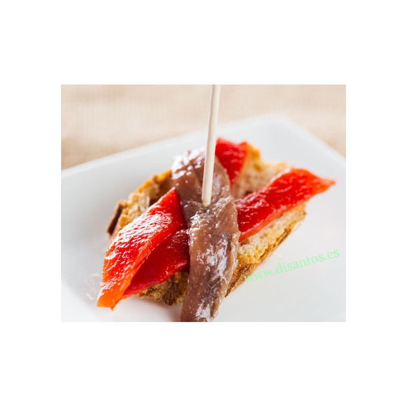 Los boquerones en vinagre son uno de los aperitivos mas frecuentes y valorados en los bares, restaurantes y terrazas del Sur. Su principal ingrediente lógicamente son los boquerones, una especie de pescado (el mismo que la anchoa) de pequeñas dimensiones (20 cm) que una vez limpio y sacados sus lomos los marinamos en vinagre y en abundante ajo y perejil, según el gusto de consumidor. Suele servirse con cerveza o refrescos, sobre unas patatas fritas (chips o de bolsa) en montaditos o bocadillos, solos o combinados con atún o anchoas. Este formato es especial para bares y restaurantes, con la cantidad justa para un par de bandejas de barra, disfrute de su gran calidad y su excelente sabor. Este producto esta libre de anisakis. Es un alimento muy saludable y tiene muchas proteínas.