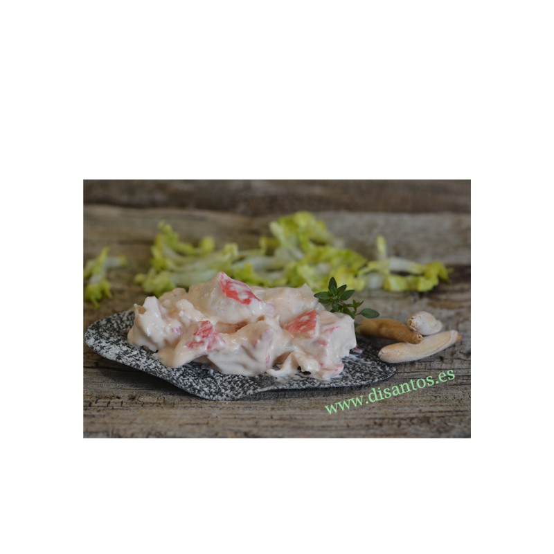 Existen en el mercado gran variedad de ensaladilas de cangrejo, la mayoria con piña. Nosotros no le ponemos piña, el sabor es más suave y menos acida, la salsa que le acompaña le aporta un sabor y una textura que la diferencia de la competencia. Aperitivos caseros.