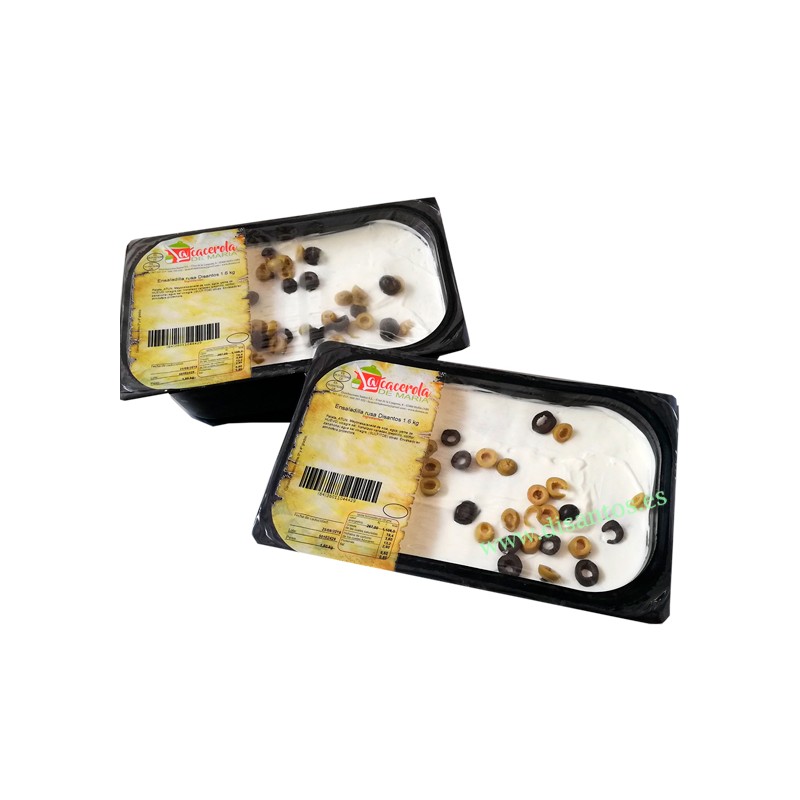 Comida preparada. Ensaladilla rusa, casera, elaborada a mano en pequeñas cantidades, de manera artesanal, sin ningún conservante. Natural, fresca y muy rica, perfecta para comer en cualquier momento. Presentada en bandeja de 1.6 kg. Ideal para el consumo en casa, en bares o restaurantes de consumo medio. comida preparada para restauración.
