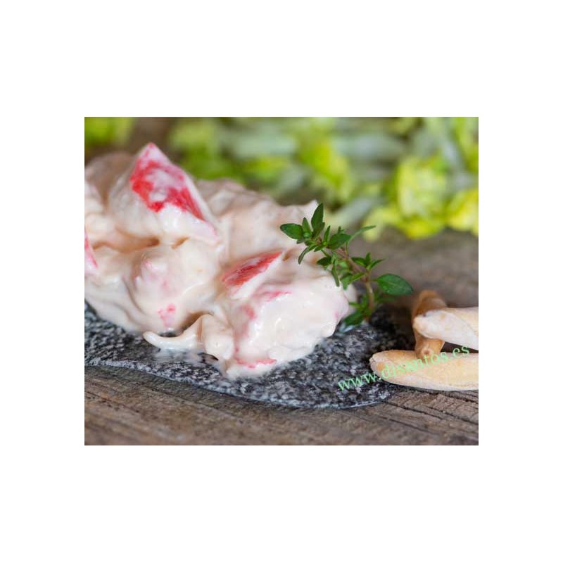 Existen en el mercado gran variedad de ensaladilas de cangrejo, la mayoria con piña. Nosotros no le ponemos piña, el sabor es más suave y menos acida, la salsa que le acompaña le aporta un sabor y una textura que la diferencia de la competencia. Aperitivos caseros.
