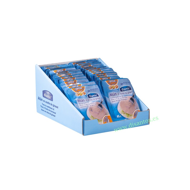El atún claro es una especie de pescado migratoria que se pesca en aguas tropicales y ecuatoriales. El Atún Claro, al igual que el Bonito del Norte, es un pescado azul de parecido contenido proteico, aunque es un poco más graso. También se asemejan en el contenido de vitaminas hidrosolubles del grupo B y minerales, pero el atún contiene más vitaminas solubles en grasa A y D, especial para consumos elevados, y con un alto rendimiento ya que la cantidad de atún real es de 85 gr. Tiene una gran utilidad en las cocinas de casa y para unos estupendos bocadillos o ensaladas
