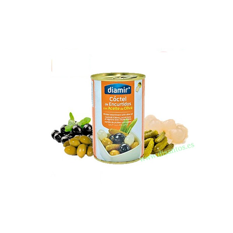 Sus Pepinillos finos, crujientes y deliciosos, sus Cebolletas blancas pequeñas y delicadas, acompañadas de unas Aceitunas Manzanilla Verdes de la mejor clase y Aceituna Negras, así como la composición de su aliño, le hacen diferente y destaca del resto.