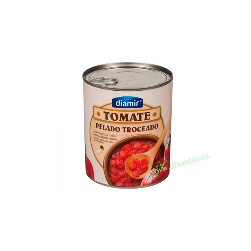 Producto obtenido a partir de tomates frescos y sanos, que tras tratamientos previos de lavado y selección, son pelados por medios mecánicos, troceados automáticamente y envasados en envases herméticamente cerrados con adición de zumo de tomate como líquido de cobertura y esterilizados para su conservación. Este tomate se elabora rapidamente tras su recogida. Los tomates frescos se trocean y repasan artesanalmente. Al tomate troceado se le añade jugo de los propios tomates como líquido de gobierno. No se añade ni endurecedores ni potenciadores del sabor. Este producto es ideal para restaurantes ya que lo presentamos en formato de 1kg