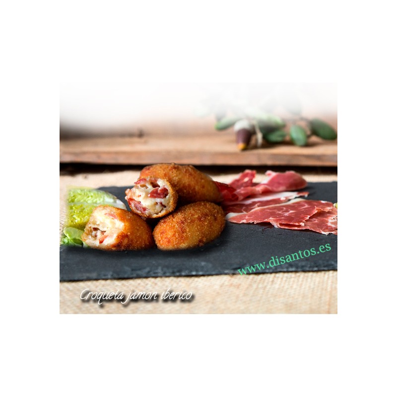 Excelentes croquetas elaboradas a mano, con taquitos de Jamón Ibérico, una delicia para el paladar. Disfrute de la cocina tradicional con estas croquetas caseras. Comida preparada de calidad. Bandejas de 1.5 kilos.