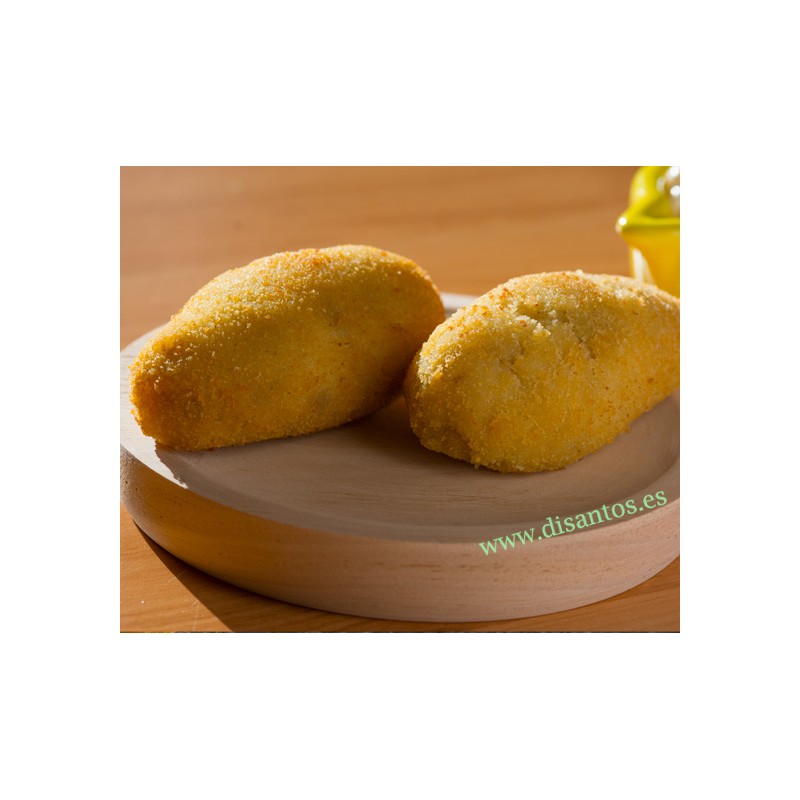 Excelentes croquetas elaboradas a mano, con taquitos de Jamón Ibérico, una delicia para el paladar. Disfrute de la cocina tradicional con estas croquetas caseras. Comida preparada de calidad. Bandejas de 1.5 kilos.