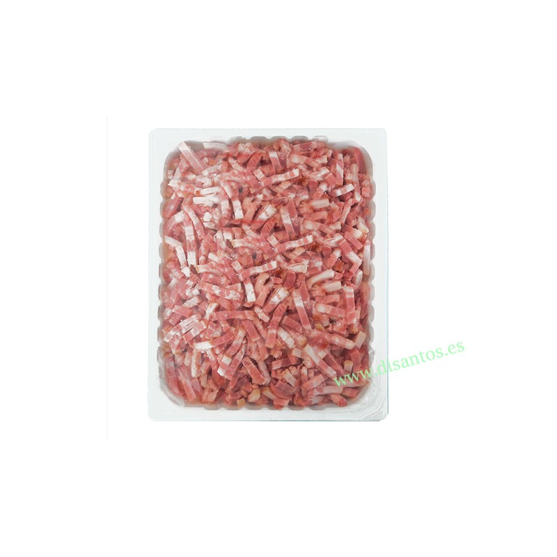 Es un producto para restaurantes, pizzerias o bares, se lonchea sobre pedido, en pequeños lotes, y nos adaptadamos a sus necesidades y formatos, tanto en pequeñas cantidades como en formatos mas grandes. Nuestro bacon es sin piel, limpio y sin corteza aprovechando todo el producto.