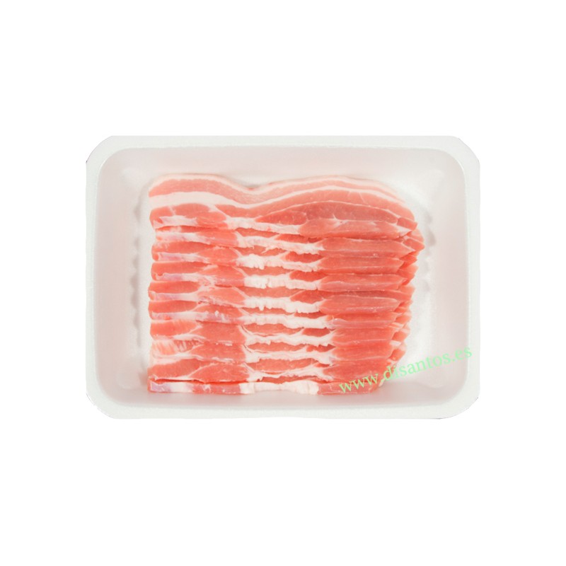 Es un producto para restaurantes, pizzerias o bares, se lonchea sobre pedido, en pequeños lotes, y nos adaptadamos a sus necesidades y formatos, tanto en pequeñas cantidades como en formatos mas grandes. Nuestro bacon es sin piel, limpio y sin corteza aprovechando todo el producto.