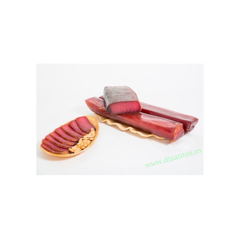 La mojama es el lomo del mejor atún en salazón, hecha con los lomos tras sufrir un proceso de curación en salazón y oreo. Es un producto muy típico de las zonas donde se emplea la almadraba como técnica de pesca, en la costa atlántica andaluza, y en las costas de la Región de Murcia y del sur de la Comunidad Valenciana, en el sureste español. Es un producto muy agradable al gusto, tierno, delicado, con sabor a mar y rico en proteínas. Acompañado con unas almendras y un buen vino es un aperitivo exquisito. Lo presentamos en pequeños tacos 300 / 400 gramos envasados al vacio.