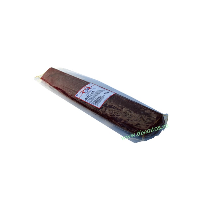 Se trata de piezas procedentes de parte del lomo más estrechas, pero que tienen un sabor delicioso.La mojama solomillo se extrae de la parte externa superior e inferior del lomo, más cercana a la piel y, al contrario de lo que su nombre pueda indicar, es la parte de menor calidad del lomo del atún.Si el solomillo se ha extraído de una materia prima bien tratada y procesada, su calidad será óptima, ya que lo más importante es la calidad del lomo, pero su textura no será tan suave como las demás calidades de mojama (extra o almadraba). Se trata de un producto gourmet.